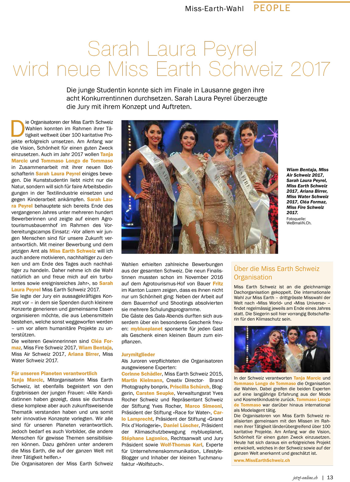 Als Juroren verpflichteten die Organisatoren ausgewiesene Experten: Corinne Schädler, Miss Earth Schweiz 2015, Martin Kielmann, Creativ Director- Brand Photography bonprix, Priscilla Schürch, Bloggerin, Carsten Seupke, Verwaltungsrat Yves Rocher Schweiz und Repräsentant Schweiz der Stiftung Yves Rocher, Marco Simeoni, Präsident der Stiftung «Race for Water», Carlo Lamprecht, Präsident der Stiftung «Grand Prix d’Horlogerie», Daniel Lüscher, Präsident der Klimaschutzbewegung myblueplanet, Stéphane Lagonico, Rechtsanwalt und Jury Präsident sowie Wolf-Thomas Karl, Experte für Unternehmenskommunikation, Lifestyle-Blogger und Inhaber der kleinen Tuchmanufaktur «Wolfstuch».